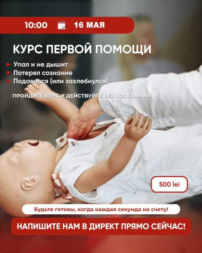 🩺 КУРС ПЕРВОЙ ПОМОЩИ КУРС ПЕРВОЙ ПОМОЩИ 16 мая Начало в 10:00 Приглашаем вас на практический Mai mult » 4 februarie 2026